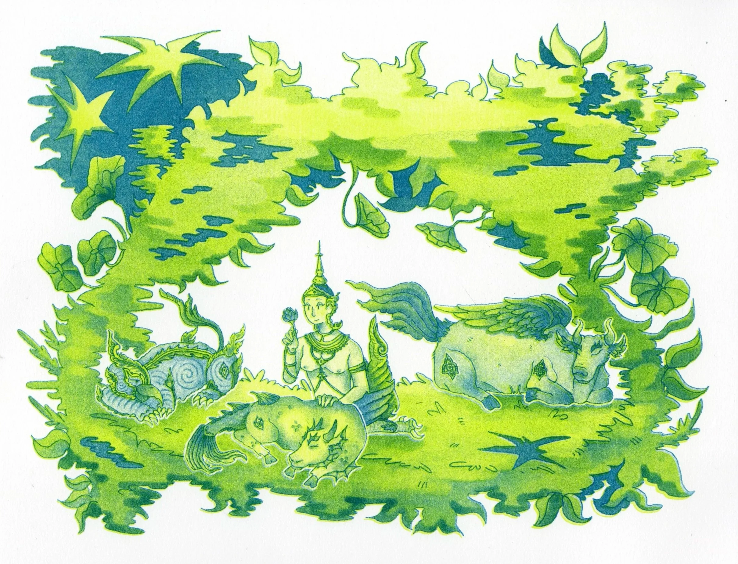 This was my first exploration into the Himmapan Forest mythology. I wanted to showcase the different animals and creatures inhibiting the forest. This project later inspired “The Traveller’s Guide to the Himmapan.”