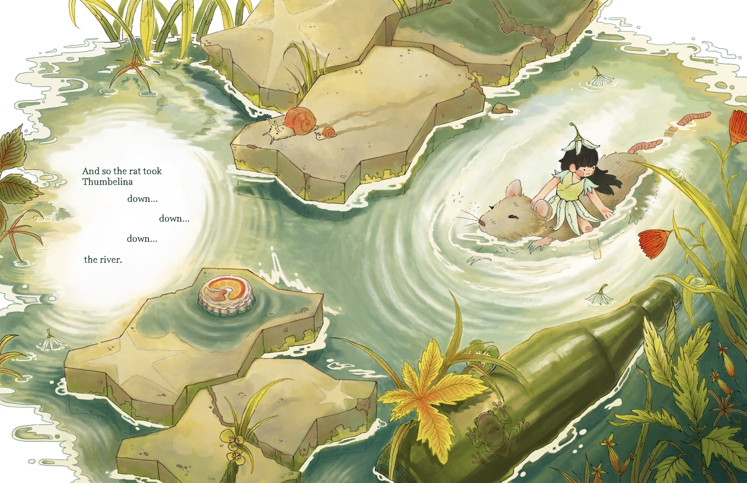 This project explored a reinterpretation of ‘Thumbelina’, using the setting of an urban city on a rainy day.