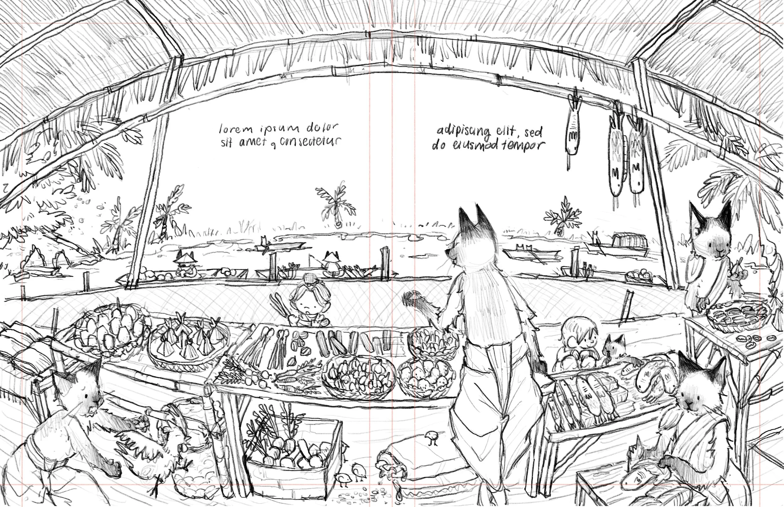 This project follows two twins as they explore Siam’s old Ayutthaya Kingdom. The catch? They’re all cats— Siamese Cats! Here they’ve arrived at the Floating market, with the freshest vegetable and fish.