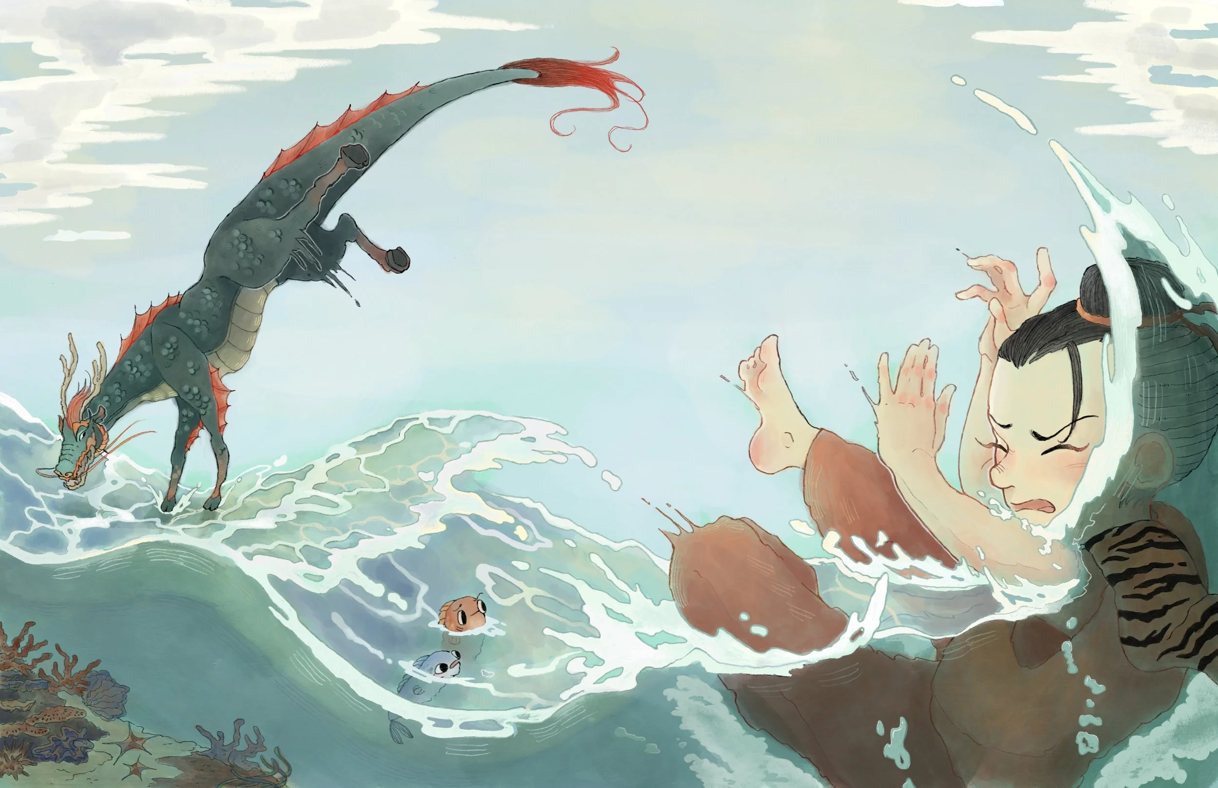 My interpretation of a scene from a popular Thai story— ‘Phra Aphai Mani’ written by Sunthorn Phu. This scene features the dragon-horse kicking the kid, Sudsakorn, away.