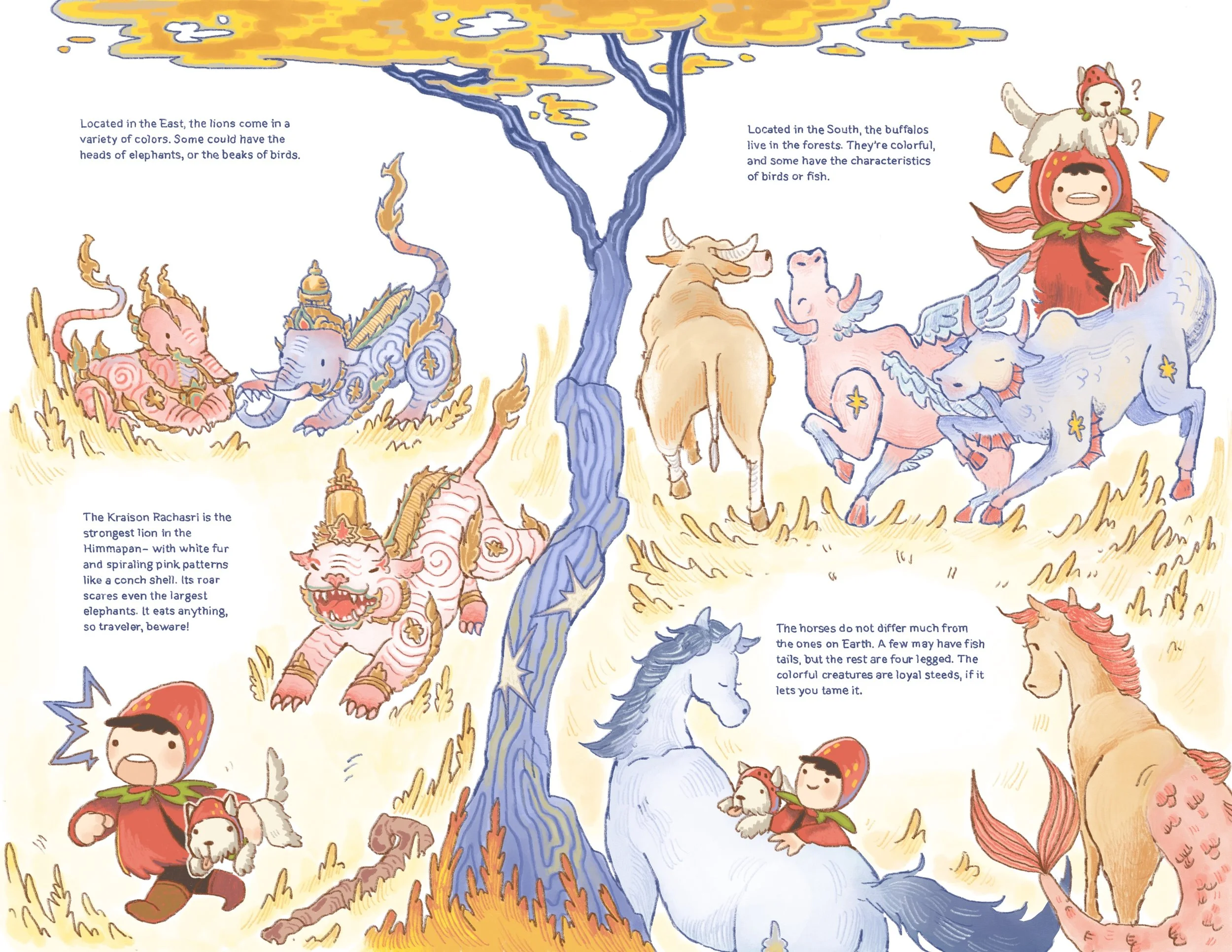 The Himmapan Forest (or Himavanta) is a concept present in Bhuddist texts, and more specifically, the Thai literature 'Traibhumikatha'. The myth first originated centuries ago, and has slowly been developed by storytellers and artists overtime. The Himmapan Forest as we know today is a product of generations of creators. Contemporarily, the story remains as a niche in Thai culture, and pop culture.